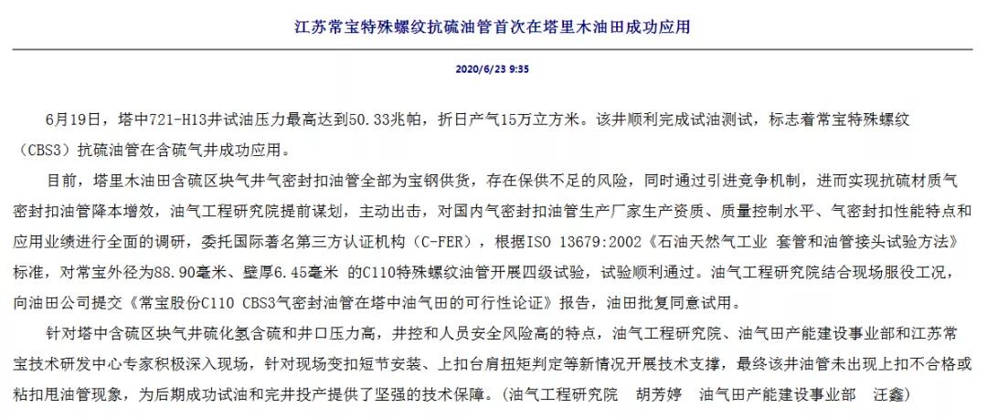 CBS3特殊扣油管在塔里木油田的顺遂使用,翻开了优德88高性能特殊螺纹讨论+高抗侵蚀质料组合在陆上苛刻条件应用的新时势,势必为公司产品在其他市场的推广应用增添包管。