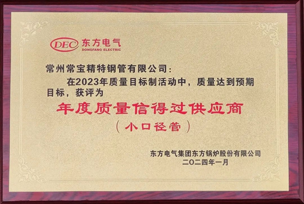 近期,在东方电气集团东方锅炉股份有限公司“整年质量目的制”运动中,依附产品质量抵达预期目的,优德88荣获东锅“2023年度质量信得过供应商”称呼。